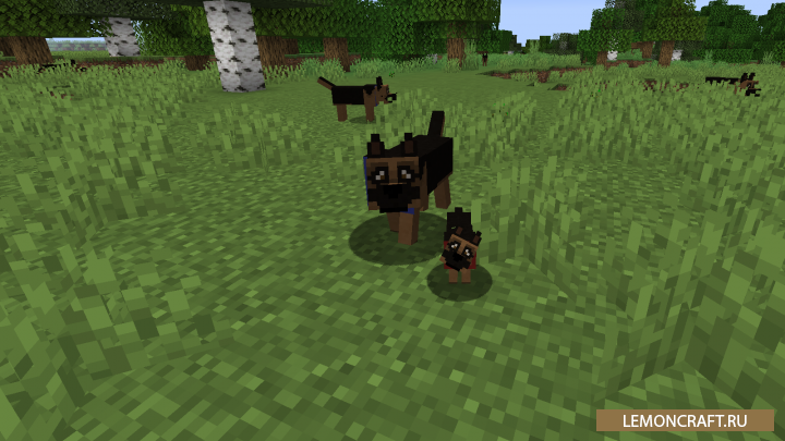 Мод на новых собак More Dogs добавляет в игру новые породы собак, которые существуют в реальном мире. На данный момент мод добавляет три породы: чихухуа, немецкая овчарка, хаски. Чихухуа вы сможете увидеть только в пустынных биомах, немецкую овчарку в лесах, а хаски только в биомах с отрицательной температурой. Приручить данных собак не составит особого труда, для этого вам понадобятся кости. Хвост у данных животных показывает их состояние здоровья, чем ниже он опущен тем меньше у них ХП. Для восстановления здоровья вашим питомцам потребуется мясо.